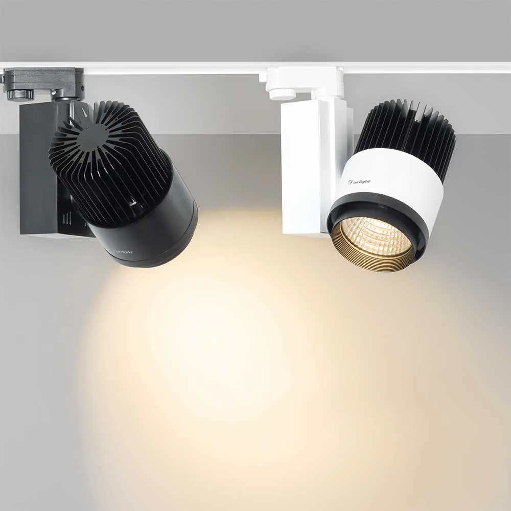 Подвесной светильник для треков/шин 4 провода. Светодиод CREE 40W, цвет ДНЕВНОЙ 4000K, св.поток 3200-3600 лм, угол 24°. Белый корпус, черная рамка и радиатор. Мощность 40Вт, питание AC180-240V. Максимальные габариты HxLxW: 205х165х160 мм