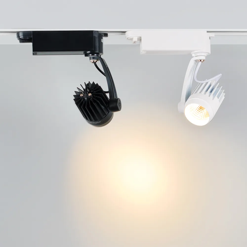 Подвесной светильник для треков/шин 2 провода. Светодиод CREE 9W, цвет ДНЕВНОЙ 4000K, св.поток 675-765 лм, угол 24°. Корпус черный. Мощность 9Вт, питание AC180-240V. Максимальные габариты HxLxW: 160х80х150 мм