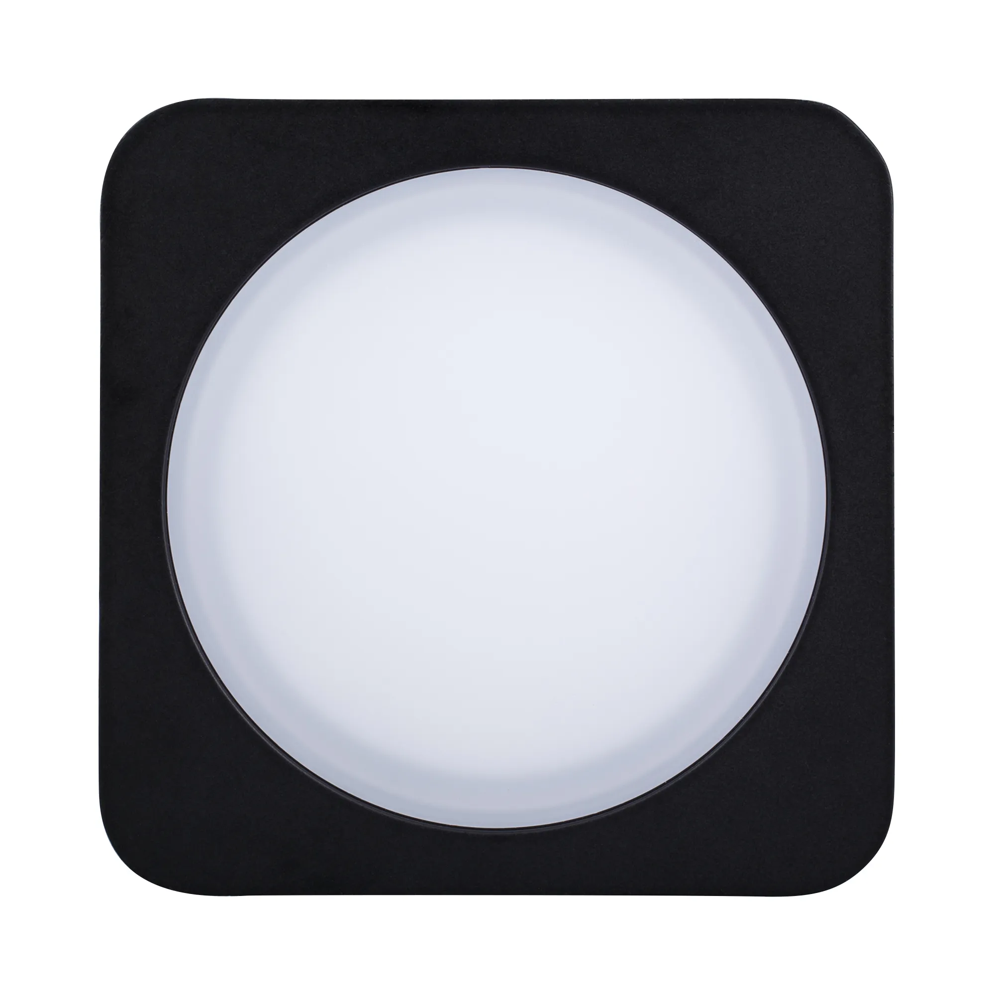 Квадратный светильник с контурным свечением. Корпус IP44 черный + вставка поликарбонат PC. Цвет ТЕПЛЫЙ БЕЛЫЙ 3000К, св.поток 700 лм, угол 120°+180°. Питание 180-240VAC (драйвер в к-те 300mA 20-40V), мощность 10Вт. Размеры 96х96х42 мм, установка в отв.80х80 мм, высота мин.40 мм.