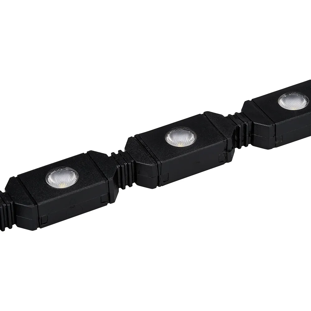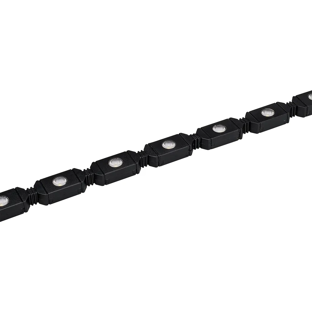 Гибкий светодиодный прожектор. Напряжение питания AC 240V, мощность 18.3W. Тип светодиодов SMD3030, количество светодиодов 20 штук, цвет светодиодов ТЁПЛЫЙ БЕЛЫЙ (3000K), световой поток 1000Lm/1m, угол рассеивания 30°. Цвет корпуса черный. Степень влагозащиты IP54. Изгиб в горизонтальной плоскости (влево/вправо). Радиус изгиба не менее 25 мм. Провод питания (1,5 метра) в комплекте. Размер 1000x20x12 мм.