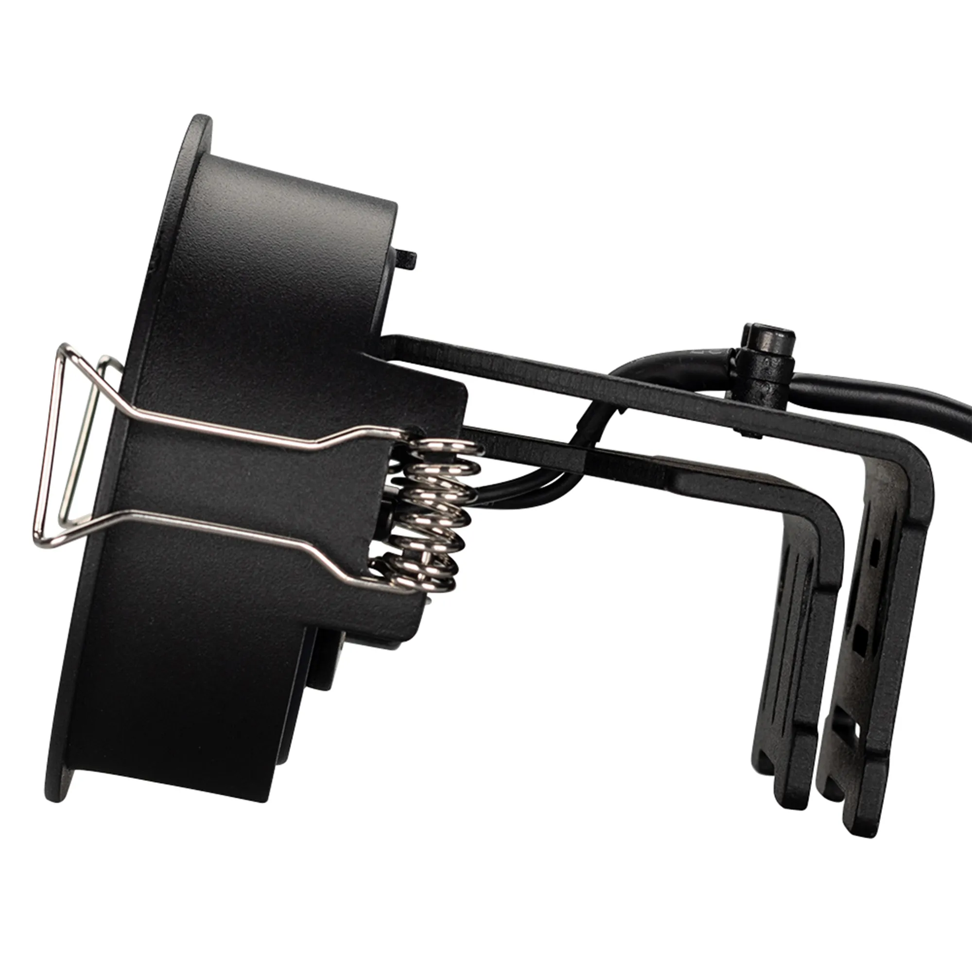 Встраиваемый поворотный светильник для потолка. Мощность 9W, цвет ДНЕВНОЙ 4000K, св.поток 630лм, угол 45°, RA>90. Корпус черный. Питание AC180-240V. Размеры DxH Ø78x90мм. Установка в отверстие Ø70мм. Драйвер в комплекте (30-45V, 220mA).