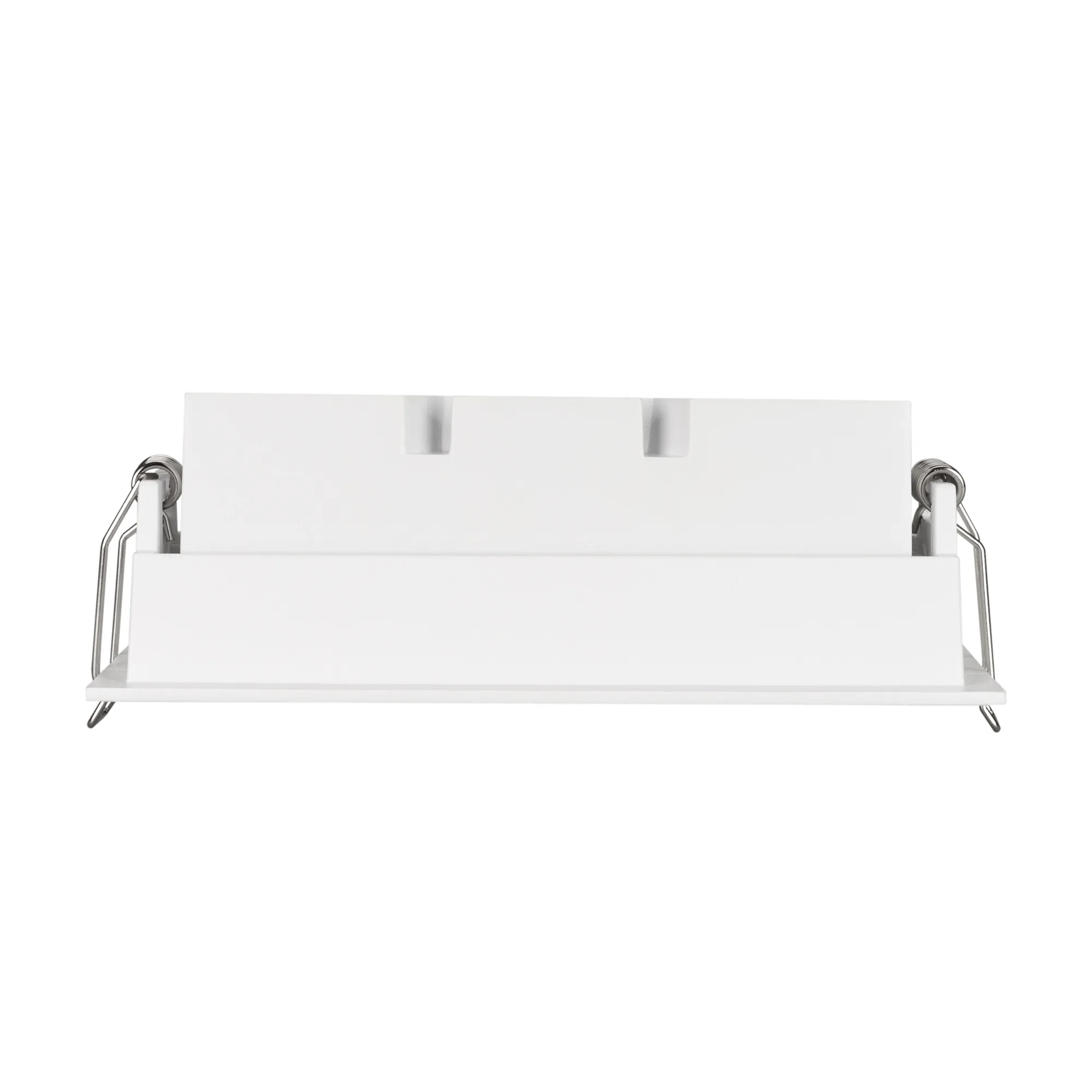 Встраиваемый поворотный светильник. Мощность 10 Вт, св. поток 750 лм, 75 лм/Вт, теплый 3000 K, CRI>98, угол 30°, напряжение питания 230 В. Белый прямоугольный корпус из алюминия, экран PMMA, степень защиты IP20. Размер: длина 150 мм, ширина 67 мм, высота 50 мм. Монтаж встраиваемый, установочное отверстие длина 145 мм, ширина 60 мм. Драйвер 9-14 В, 700 мА, пульсация <1%.