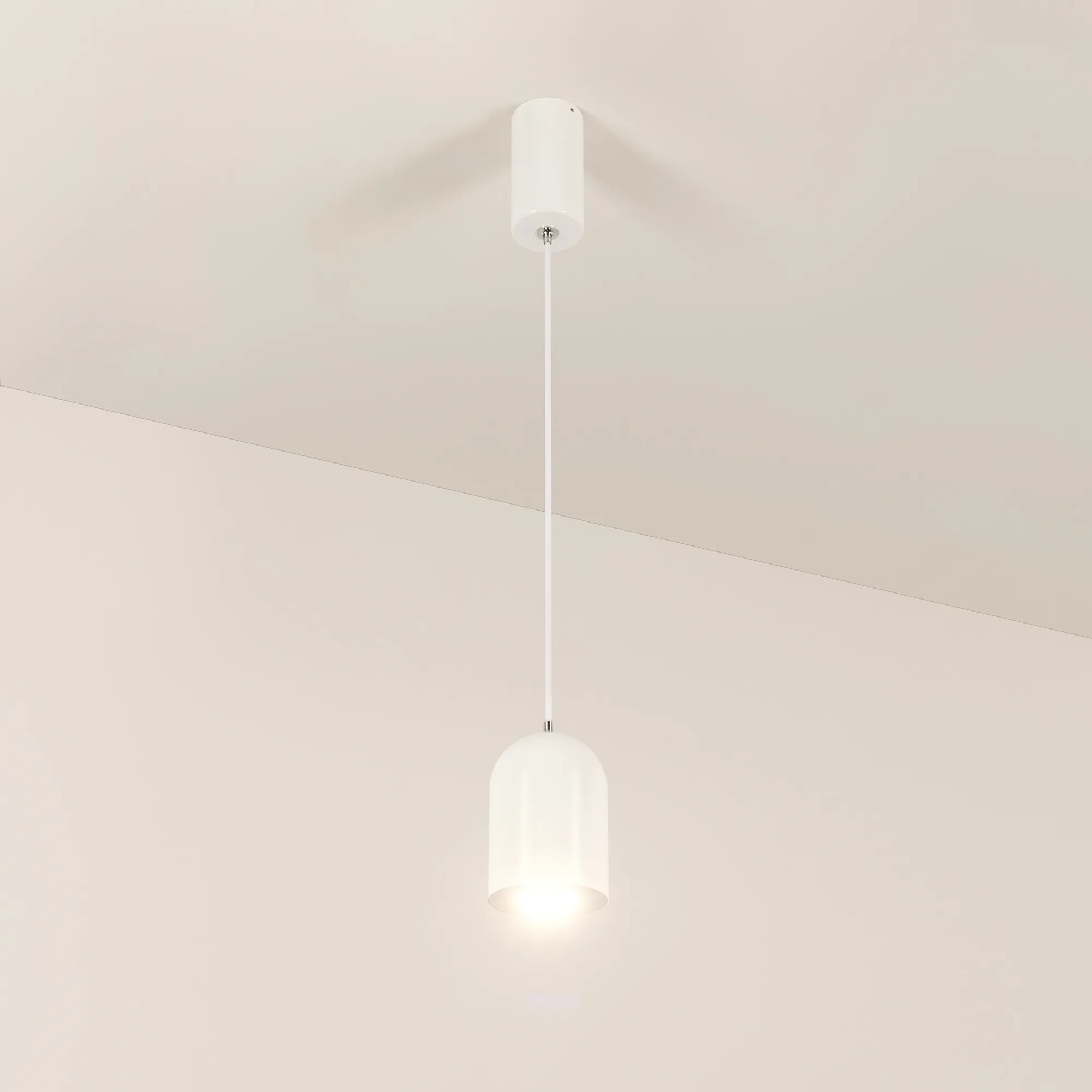 Подвесной светильник. Мощность 9 Вт, св. поток 650 лм, 73 лм/Вт, теплый 3000 K, CRI>80, угол 39°, напряжение питания 230 В. Белый корпус из алюминия, экран , степень защиты IP40. Размер: диаметр 71 мм, высота 100 мм. Монтаж подвесной, длина подвеса 1500мм, регулируемая. Габариты чаши Ø50x95 мм. Драйвер 28-42 В, 250 мА, пульсация <5%.
