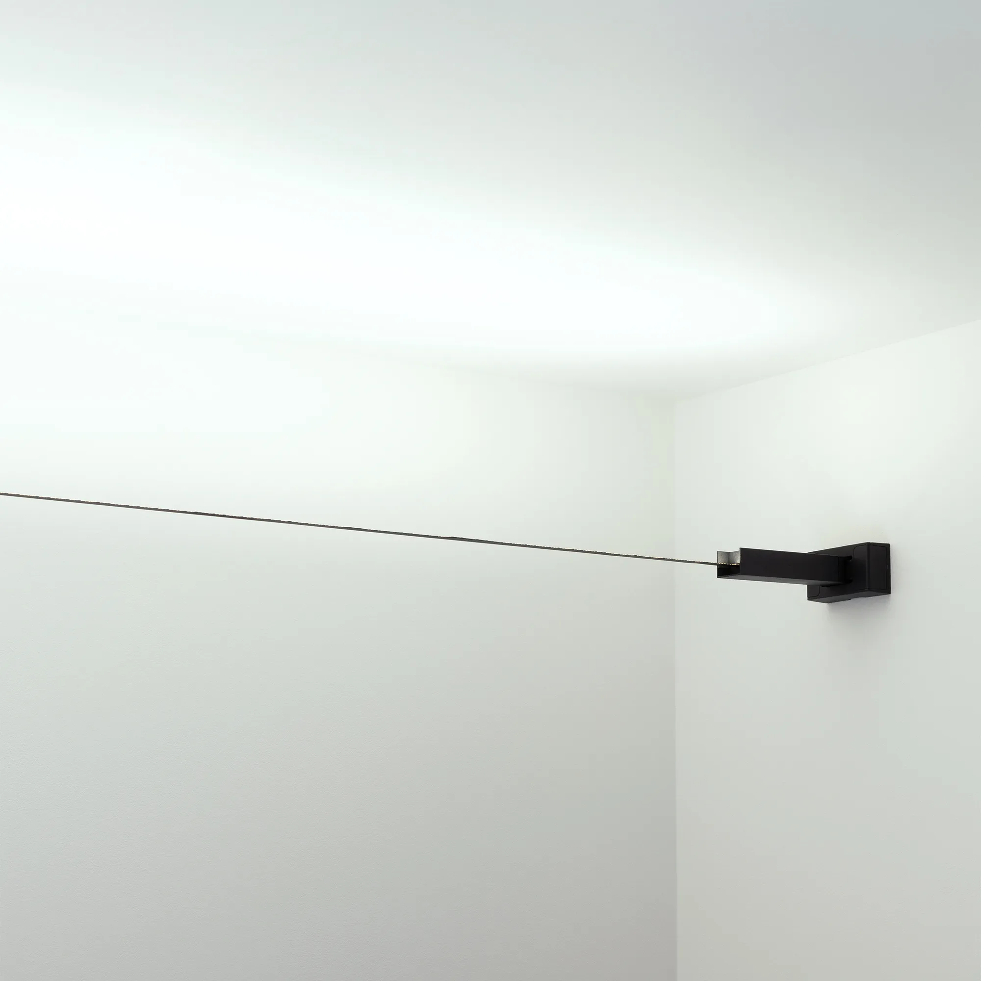 Лента-трос STINGRAY. В комплект входят: Открытая светодиодная лента RT-A120, стальное полотно для ленты 5 м, ширина 15 мм, 2 настенных крепления, аксессуары для фиксации и монтажа. Цвет - черный.