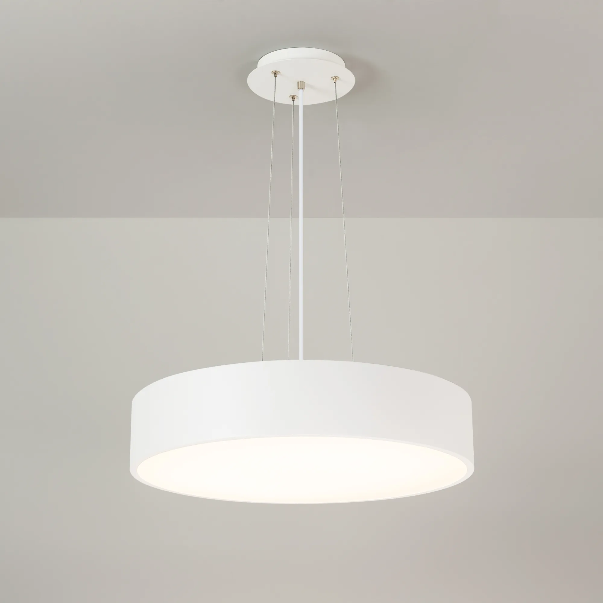Накладной интерьерный светильник. Мощность 35 Вт, св. поток 3150 лм, 90 лм/Вт, теплый 3000 K, CRI>80, угол 120°, напряжение питания 230 В. Белый круглый корпус из алюминия, степень защиты IP20. Размер: диаметр 500 мм, высота 100 мм. Монтаж накладной. Драйвер 30-42 В, 950 мА, пульсация <5%.