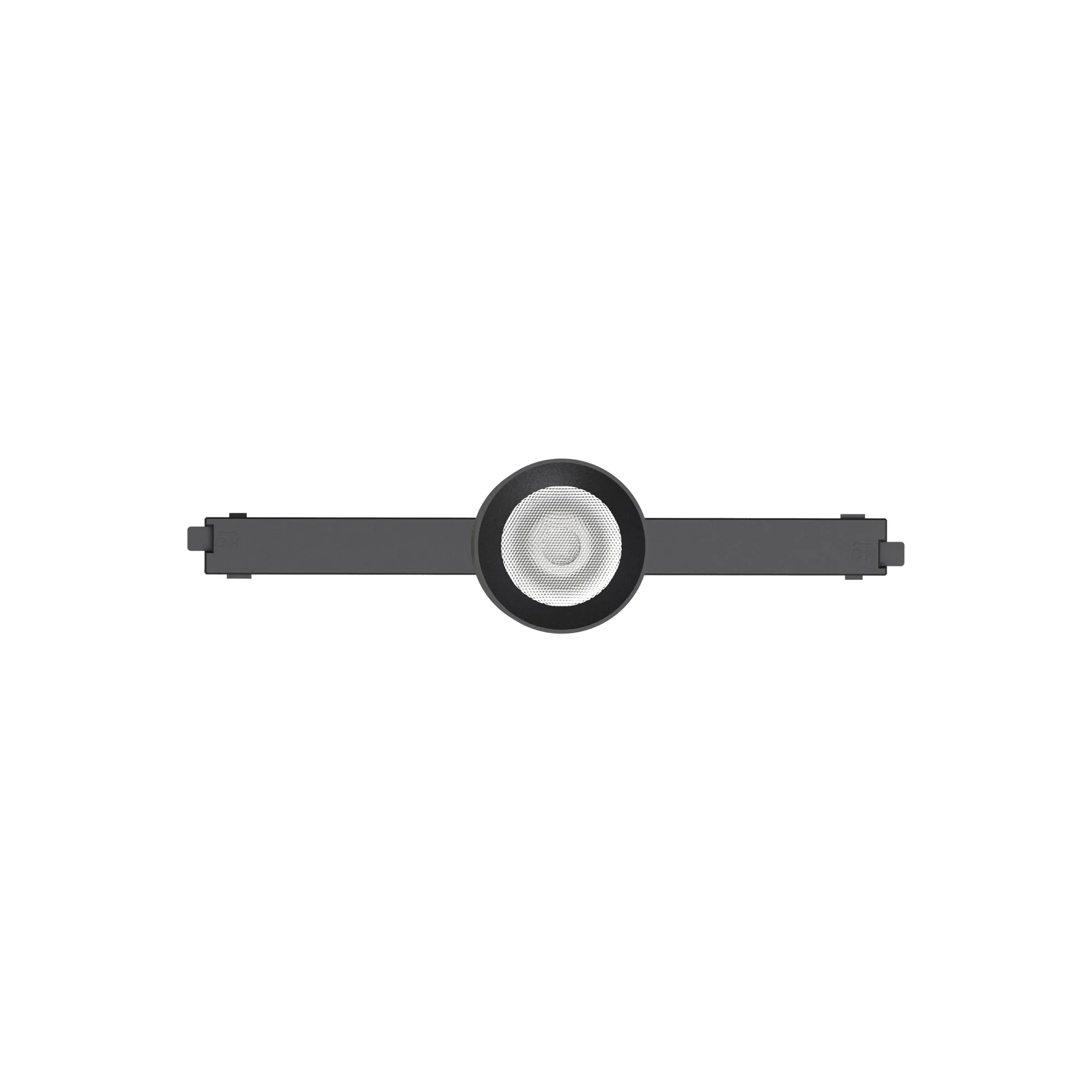 Светильник для магнитных треков MAG-ORIENT шириной 26 мм с управлением DALI. Мощность 12 Вт, св. поток 895 лм, 75 лм/Вт, теплый 3000 K, CRI>90, угол 24°, напряжение питания 48 В. Черный цилиндрический корпус из металл, степень защиты IP20. Размер: длина 204 мм, ширина 23 мм, высота 1518 мм, высота подвеса 1250мм. Размер светоизлучающего модуля: 45*250 мм. Монтаж на трек MAG-ORIENT. Пульсация <1%. UGR<16. Подвес регулируется.