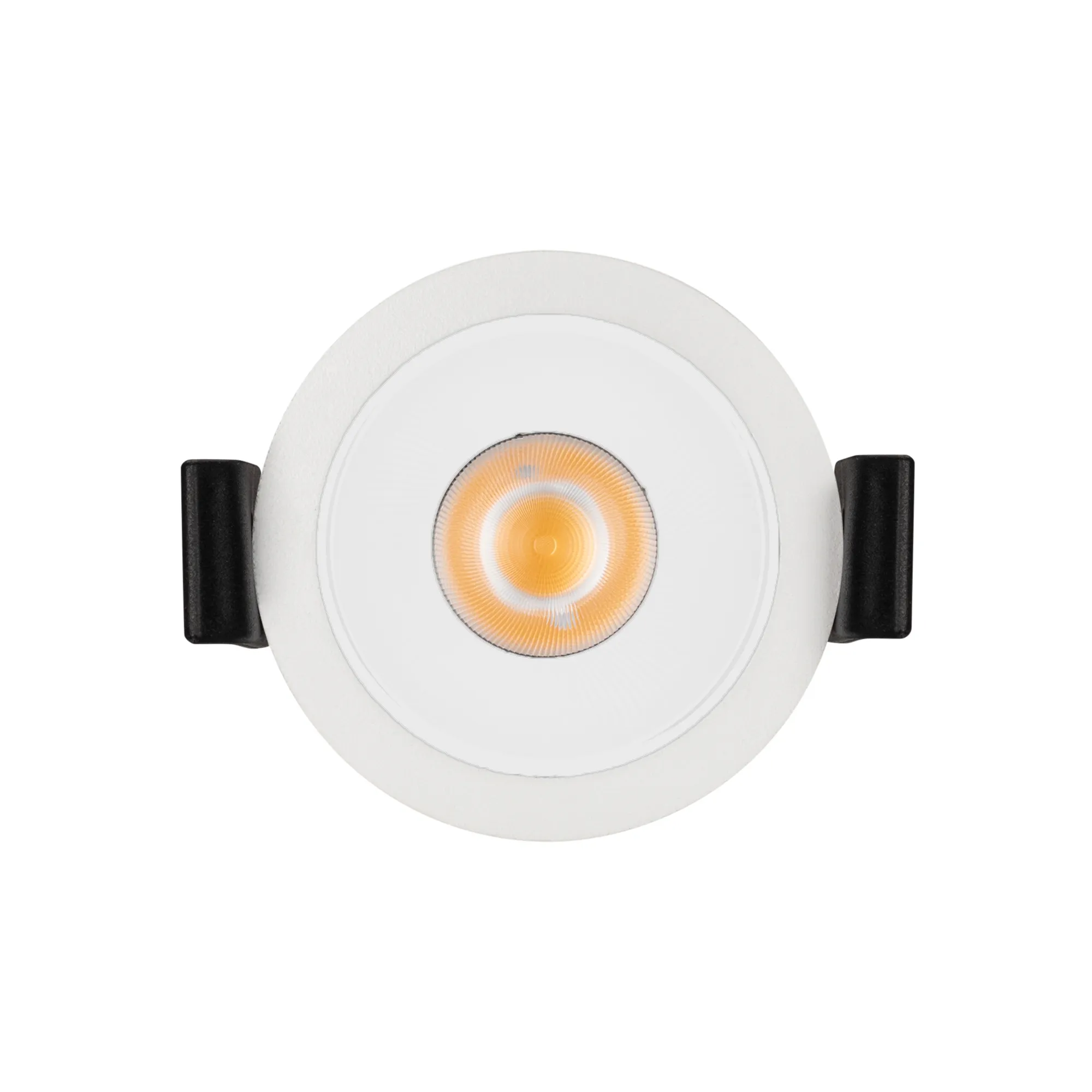 Встраиваемый светильник даунлайт. Мощность 10 Вт, св. поток 865 лм, 87 лм/Вт, дневной 4000 K, CRI>90, UGR<16, угол 35°, напряжение питания 230 В. Белый круглый корпус из алюминия, белый ГЛЯНЦЕВЫЙ отражатель из PMMA, степень защиты IP20. Размер: диаметр 58 мм, высота 68 мм. Монтаж встраиваемый, установочное отверстие: диаметр 52 мм. Драйвер 20-40 В, 250 мА, пульсация <2%.