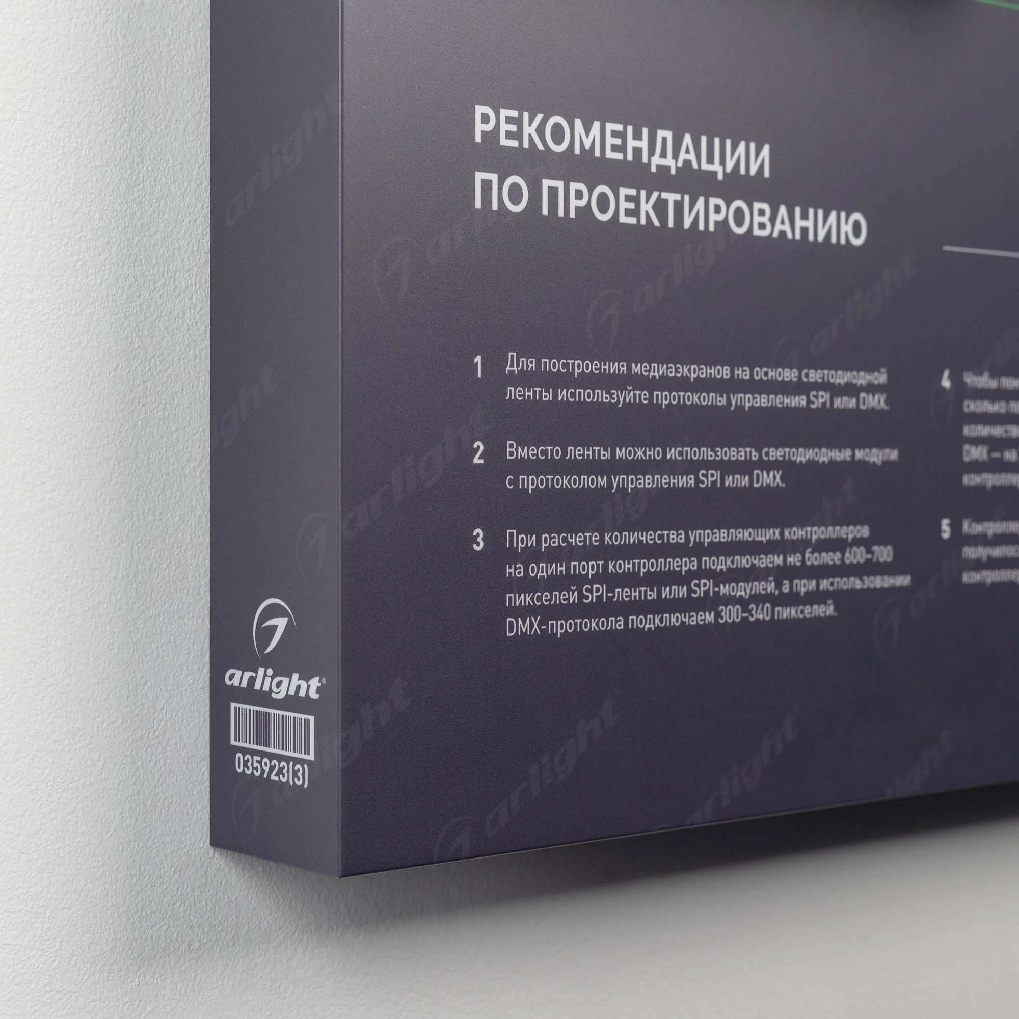Наши специалисты знают все о продукции Arlight и с радостью помогут Вам выбрать комплектующие к товару "Стенд Системы Управления SPI 830x600mm (DB 3мм, пленка, лого) (Arlight, -)", или другие товары из раздела "Управление светом".
