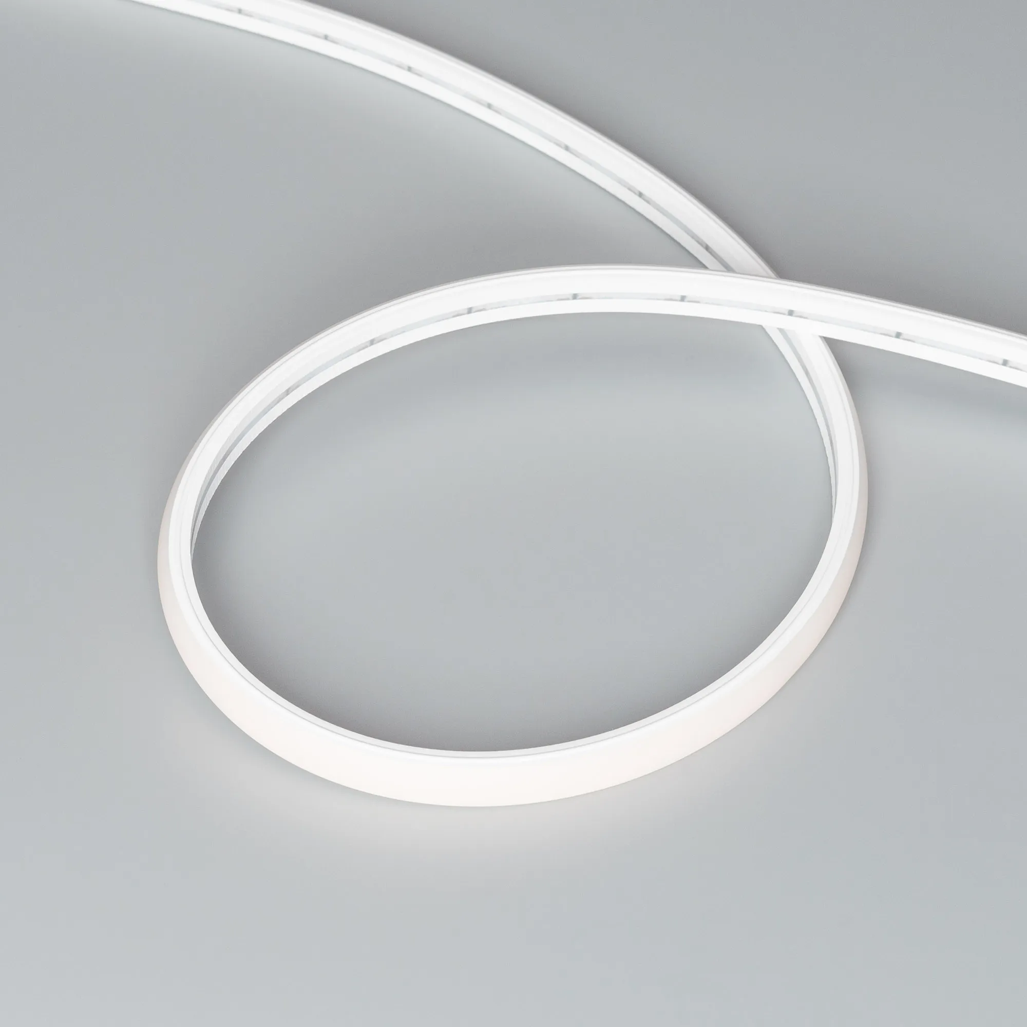 Гибкая герметичная лента (неон серии MOONLIGHT), сечение 11×7 мм. Светодиоды CSP 320 шт/м. Цвет свечения ТЁПЛЫЙ БЕЛЫЙ (2700 К), индекс цветопередачи CRI>90, световой поток 750 лм/м, угол излучения 120°. Мощность 10 Вт/м, питание 24 В. Класс пылевлагозащиты IP65. Размеры 5000×7×11 мм. Мин. отрезок 25 мм. Вертикальный изгиб TOP, минимальный радиус изгиба 60 мм. Вывод кабеля с двух сторон. Катушка 5 м. Цена за 1 м. Гарантия 3 года.