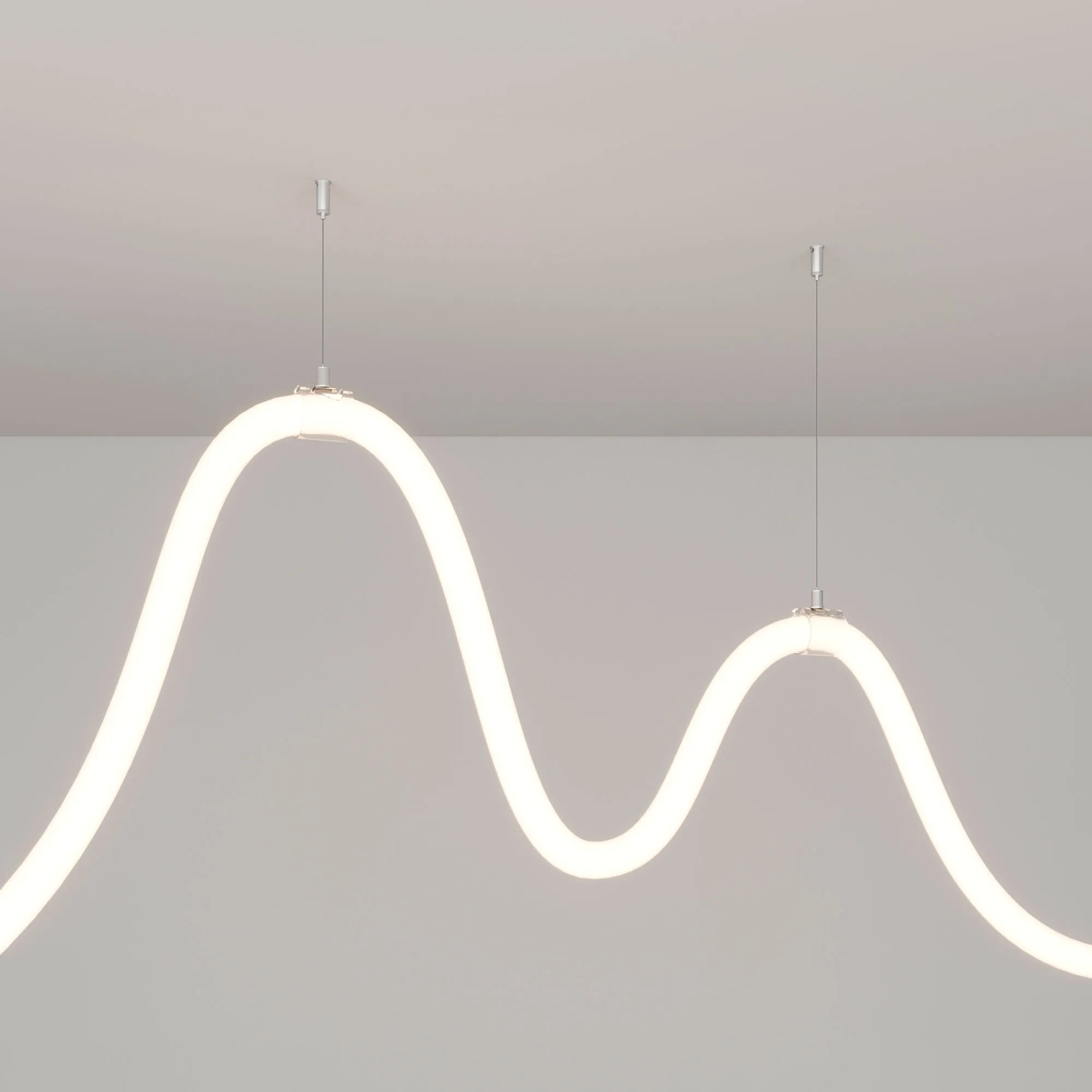 Горизонтальный подвес для герметичной ленты MOONLIGHT-D25. Цвет чёрный. Длина тросов 2м. Подходит для любых потолочных поверхностей. Совместим с прозрачными трубками с боковым выводом кабеля (см.совместимые).