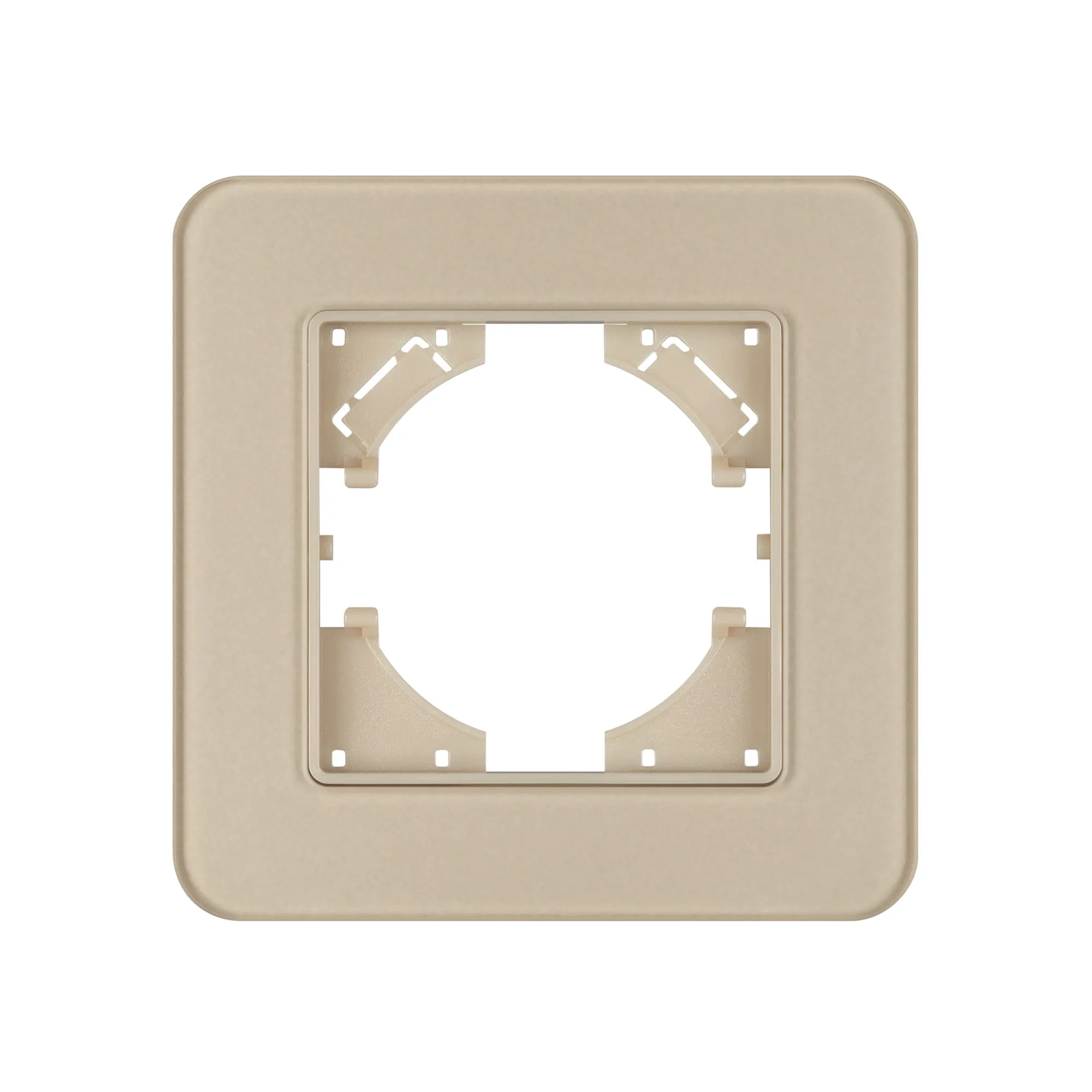 Рамка стеклянная на 1 пост, под встраиваемый механизм. Цвет - золотой с Soft-Touch покрытием. Среднего уровня герметичности IP20. Ориентация монтажа - горизонтальная (основным ориентиром служат посадочные выступы для накладки механизма). Ориентация монтажа горизонтальная и вертикальная.