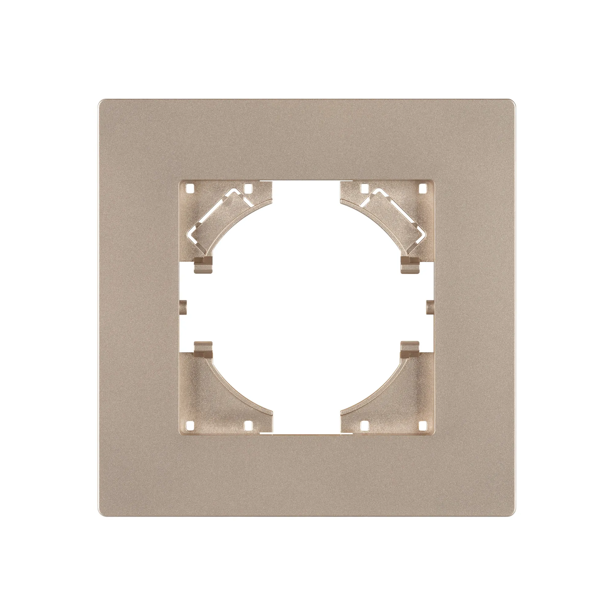 Рамка пластиковая на 1 пост, под встраиваемый механизм. Цвет - золотой. Среднего уровня герметичности IP20. Ориентация монтажа - горизонтальная (основным ориентиром служат посадочные выступы для накладки механизма).