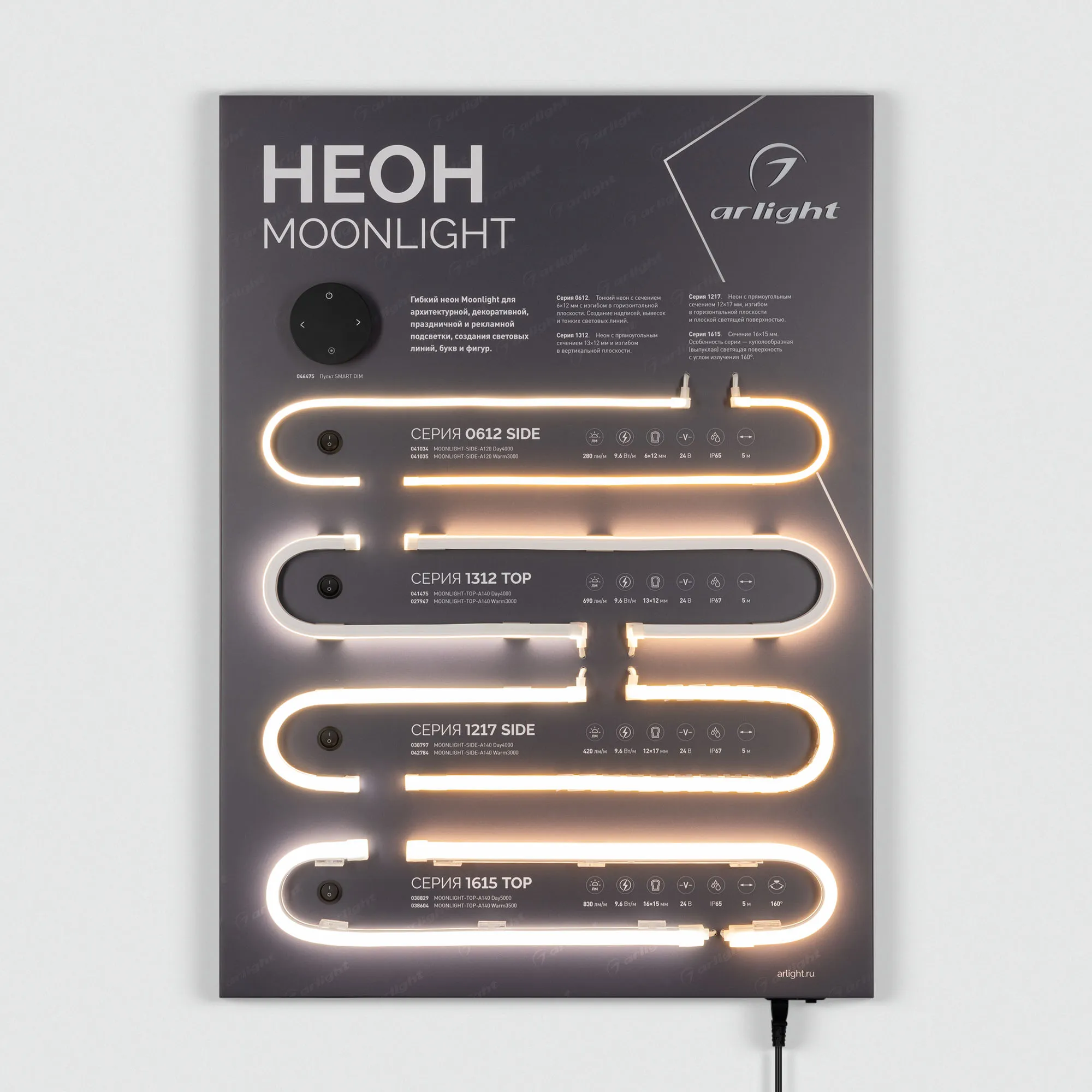 Наши специалисты знают все о продукции Arlight и с радостью помогут Вам выбрать комплектующие к товару "Стенд Гибкий Неон MOONLIGHT-830x600mm (DB 3мм, пленка, подсветка) (Arlight, -)", или другие товары из раздела "Светодиодный декор".