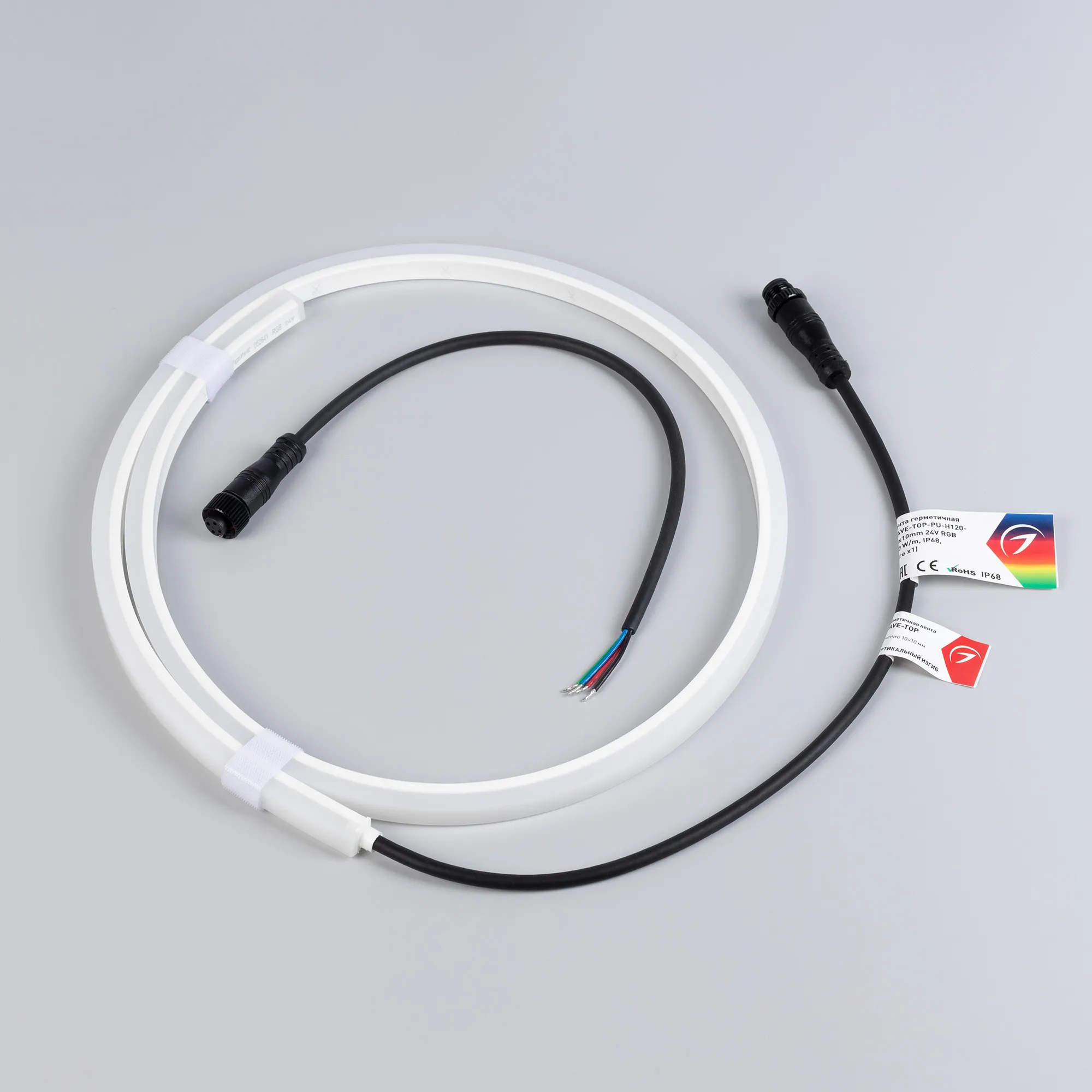 Лента герметичная WAVE-TOP-PU-H120-10x10mm 24V RGB (10 W/m, IP68, 1m, wire x1) (Arlight, Вывод боковой, 3 года)