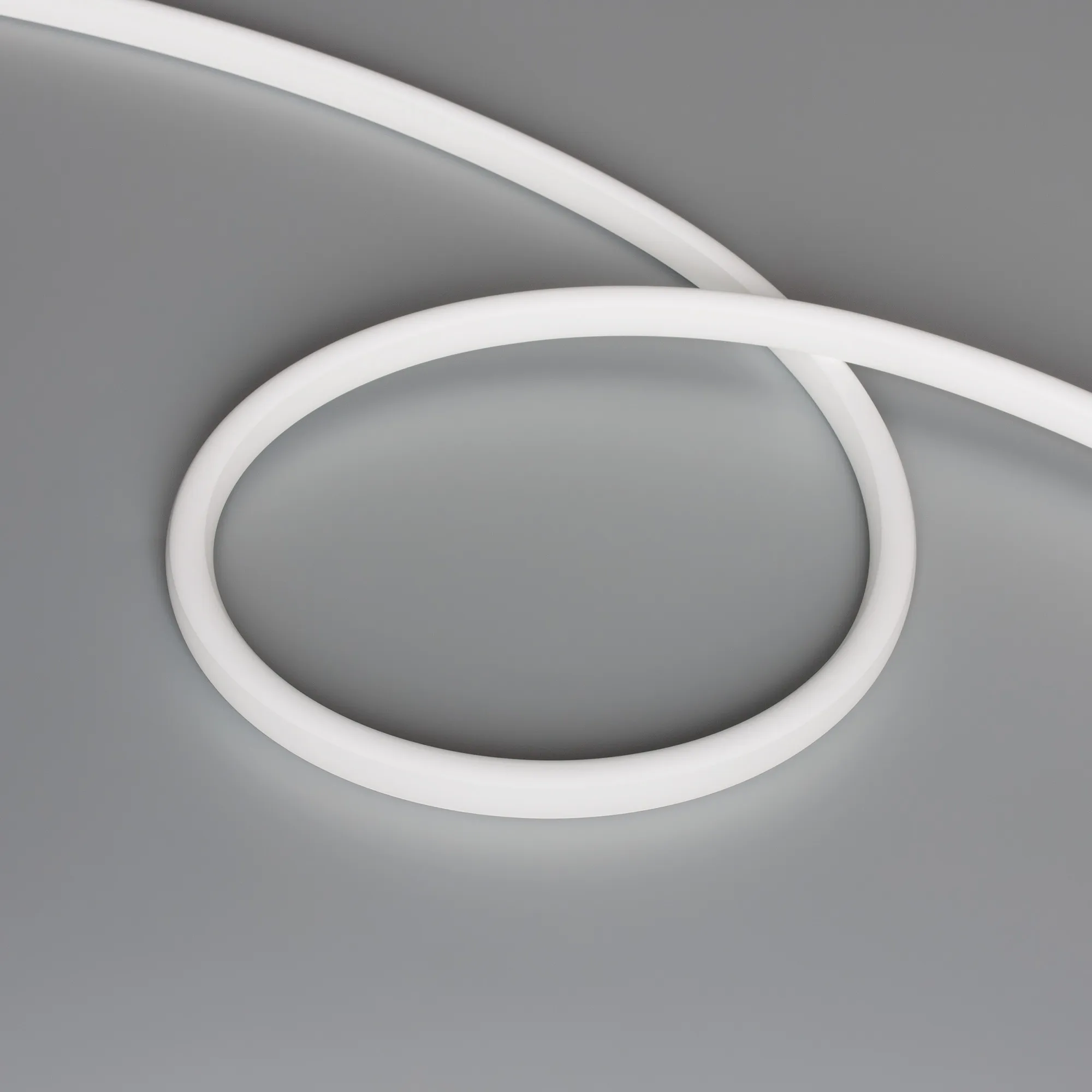 Гибкая герметичная лента (неон серии WAVE), сечение 18×15 мм с тросом-натяжителем. Светодиоды SMD2835 240 шт/м. Цвет свечения RGB, угол излучения 360°. Мощность 10 Вт/м, питание 24 В. Класс пылевлагозащиты IP54. Размеры 5000×18×15 мм. Мин. отрезок 50 мм. Изгиб согласно метки на корпусе, минимальный радиус изгиба 150 мм. Кабель питания длиной 500 мм, вывод с одной стороны вдоль линии сечения неона. Катушка 5 м. Цена за 1 м. Гарантия 3 года.