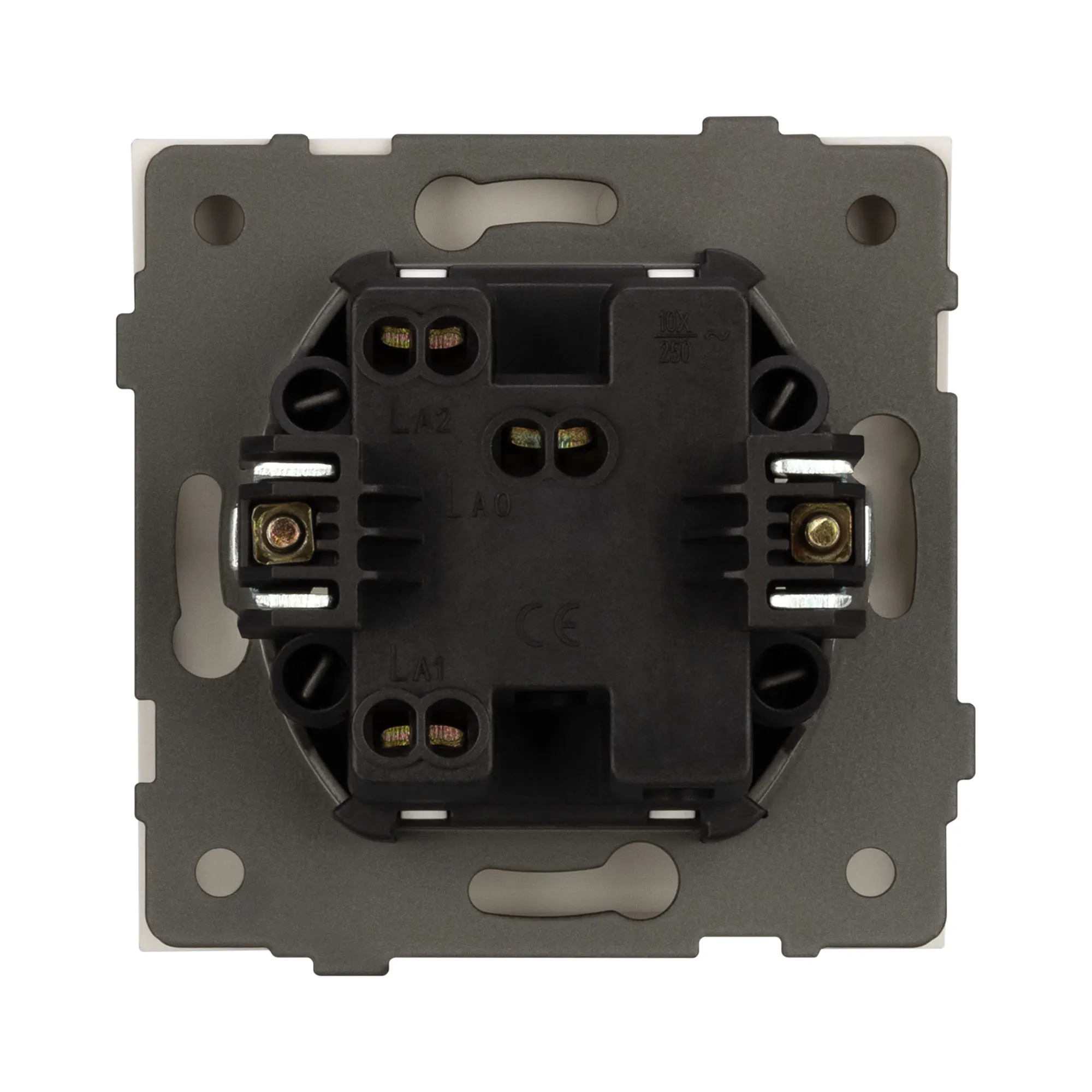 Механизм выключателя света клавишный на 1 пост 1 клавиша (проходной). Цвет - золотой. Без фронтальной рамки. Уровень пылевлагозащиты IP20. Выключатель устанавливается в стандартный подрозетник круглого сечения диаметром 60мм.