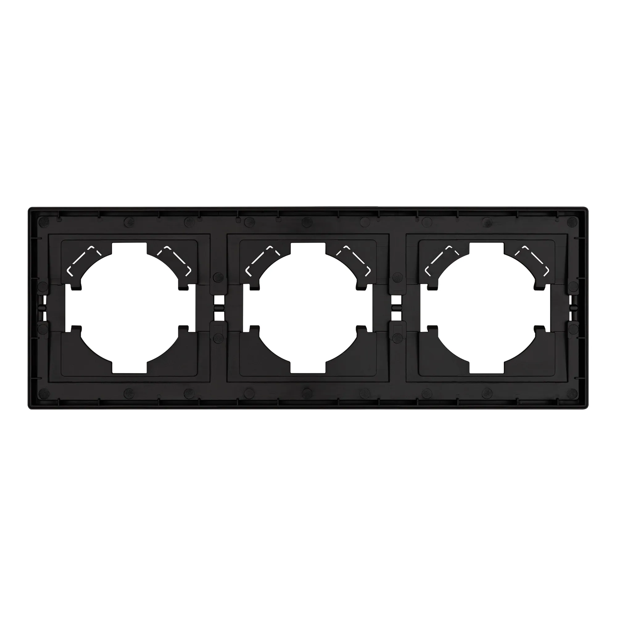 Рамка пластиковая на 3 поста, под встраиваемый механизм. Цвет - черный, с Soft-Touch покрытием. Среднего уровня герметичности IP20. Ориентация монтажа горизонтальная.